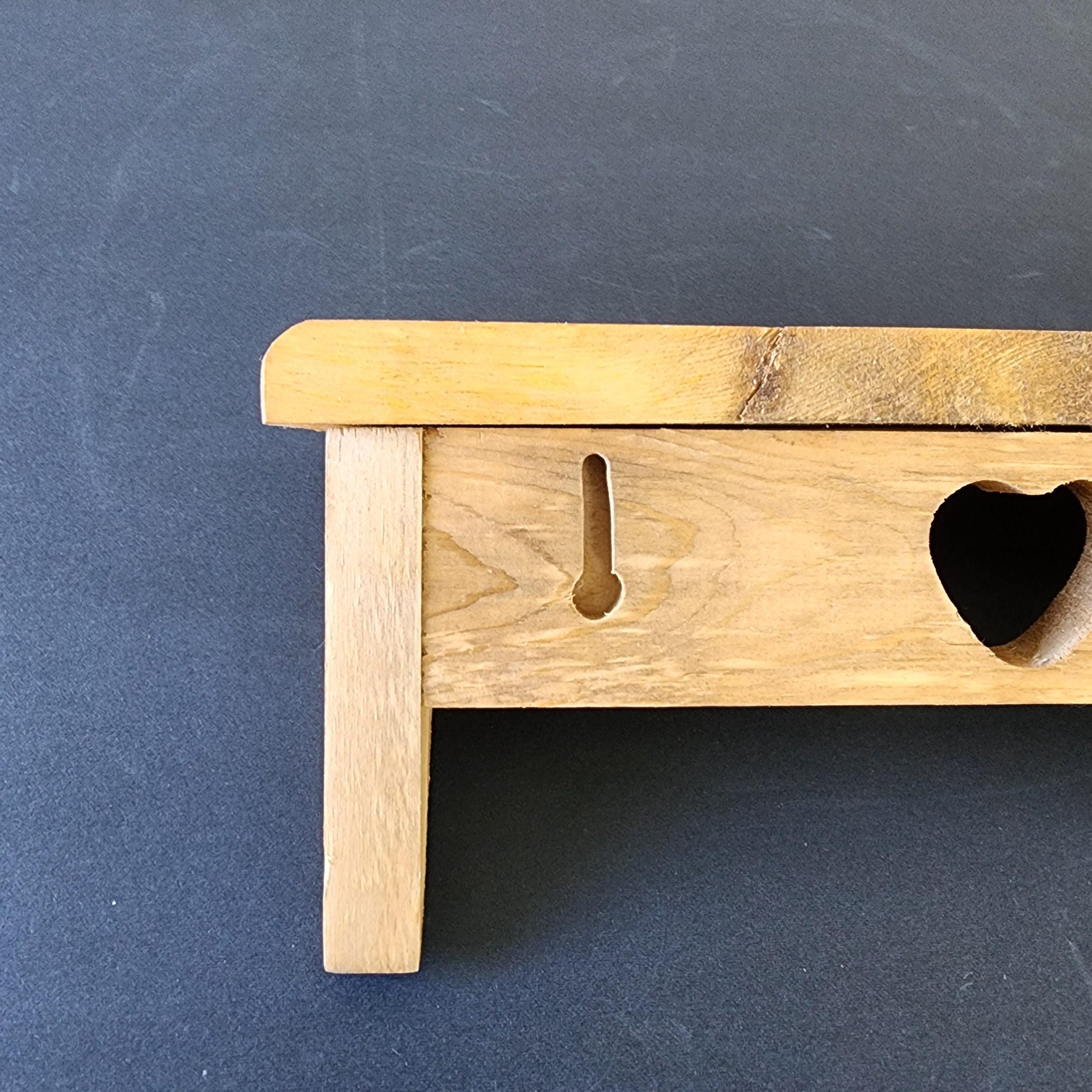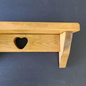 This charming vintage mini wooden wall shelf features a classic heart cutout design, adding a touch of warmth and nostalgia to your home décor. Crafted from solid wood, it has a rustic farmhouse aesthetic perfect for showcasing small treasures, candles, or seasonal accents. Ideal for a country kitchen, cozy cottage, or vintage-inspired space, this petite shelf brings handcrafted character and simple charm to any wall.